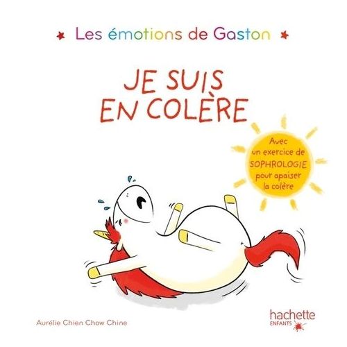 Gaston est une petite licorne différente des autres. Il a une particularité : sa crinière porte les couleurs de l'arc-en-ciel lorsqu'il va bien, mais dès qu'une émotion forte le submerge, sa crinière et sa queue changent de couleur selon son humeur : la tristesse, la colère ou encore la joie par exemple. Une série d'albums écrite et illustrée par Aurélie Chien Chow Chine, sophrologue pour les adultes et les enfants. Elle exerce notamment dans les écoles maternelles. Une émotion par album. Dans celui-ci : la colère. A la fin de chaque histoire : des petits gestes magiques (petits exercices très simples) pour aider l'enfant àgérer ses émotions.