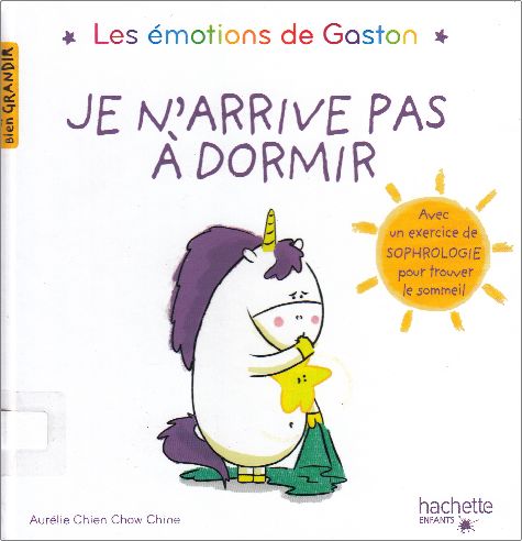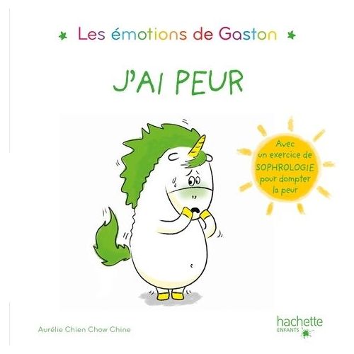 Gaston est une petite licorne différente des autres. Il a une particularité : sa crinière porte les couleurs de l'arc-en-ciel lorsqu'il va bien, mais dès qu'une émotion forte le submerge, sa crinière et sa queue changent de couleur selon son humeur : la tristesse, la colère ou encore la joie par exemple. Une série d'albums écrite et illustrée par Aurélie Chien Chow Chine, sophrologue pour les adultes et les enfants. Elle exerce notamment dans les écoles maternelles. Une émotion par album. Dans celui-ci : la peur. A la fin de chaque histoire : des petits gestes magiques (petits exercices très simples) pour aider l'enfant àgérer ses émotions.