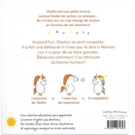 Gaston est une petite licorne comme toutes les autres, ou presque... Sa crinière arc-en-ciel change de couleur en fonction de ses émotions ! Aujourd'hui, Gaston se sent coupable. Il a fait une bêtise et il n'ose pas le dire àMaman car il a peur de se faire gronder. Découvre comment il va retrouver sa bonne humeur ! A la fin de l'histoire, un exercice de respiration pour aider l'enfant àgérer son émotion.